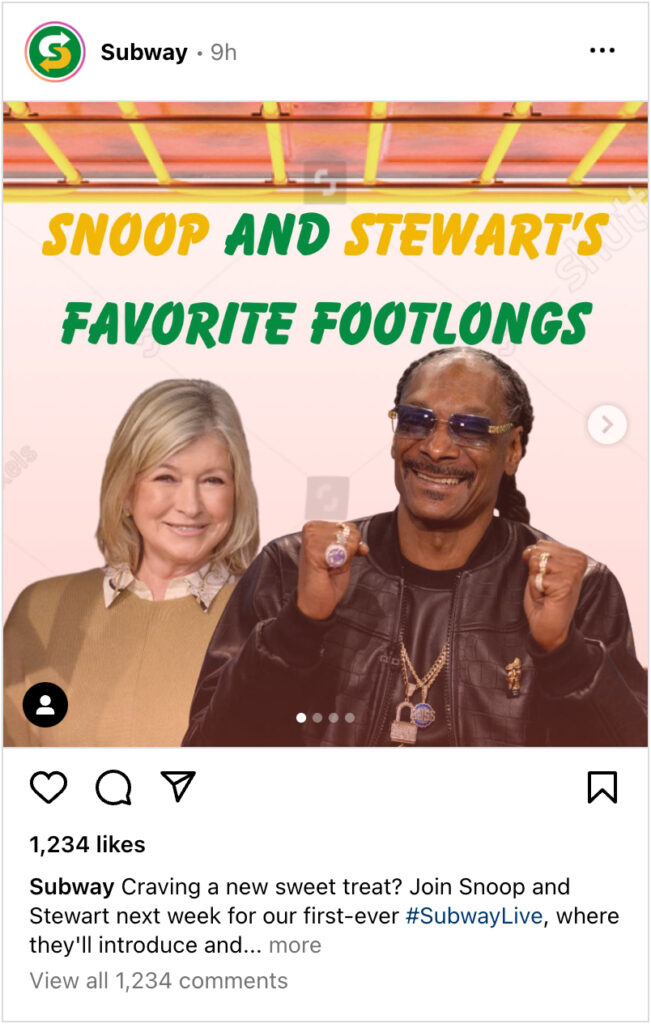 Craving a new sweet treat? Join Snoop and Stewart next week for our first-ever #SubwayLive, where they’ll introduce and taste-test our brand-new Cravings Meal!